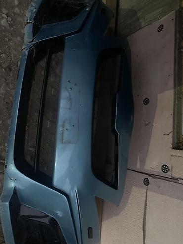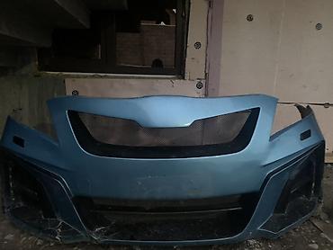 Передний бампер тюнинг (неоригинальный), пластиковый/стеклопластик, цвет голубой металлик.
