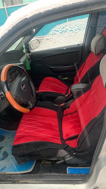 Салон: чехлы на передних сиденьях (красно‑черные), подголовники, передний подлокотник, декоративная оплётка руля, коврики. Электростеклоподъемники спереди, центральная консоль с магнитолой/аудиосистемой, боковые зеркала с ручной регулировкой.