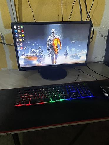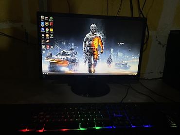 Подходит для игр, учебы и работы: на рабочем столе установлены популярные игровые лаунчеры и утилиты, демонстрационные обои игр Battlefield и Valorant. Подключение по HDMI/DVI/VGA (в зависимости от монитора), питание от стандартной сети. Комплект готов к использованию: монитор + клавиатура + мышь + коврик.