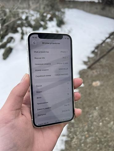 IPhone 12 mini, 256 ГБ, белый цвет. Модель MG6H3LL/A. Версия iOS на фото — 16.2 (страница «Об этом устройстве»)