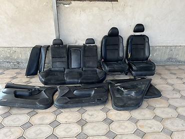 Комплект сидений для автомобиля, кожаные, черного цвета Состав: - Два передних кресла с подголовниками - Задний диван со спинкой и подушкой, три подголовника - Центральный задний подлокотник с ниш...