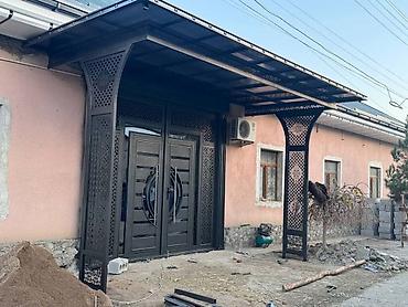 - Навесы и козырьки над входом: прочный металлический каркас, декоративные панели с лазерной резкой, защита от осадков, возможность интеграции с воротами/дверями по стилю.