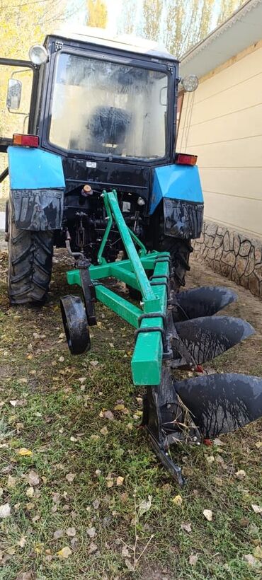 - На фото — работа с навесным плугом на 3 корпуса и опорным колесом (плуг входит в комплект, если указан на изображениях).