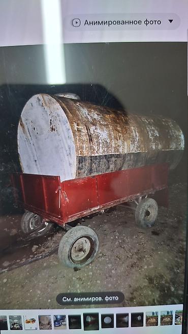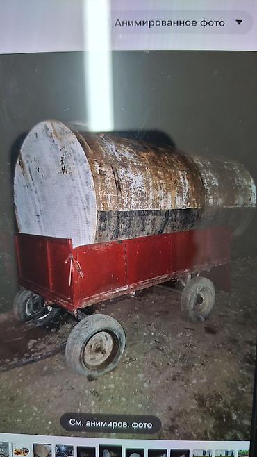 - Металлическая горизонтальная бочка цилиндрической формы, установлена на четырёхколёсный прицеп с бортами.