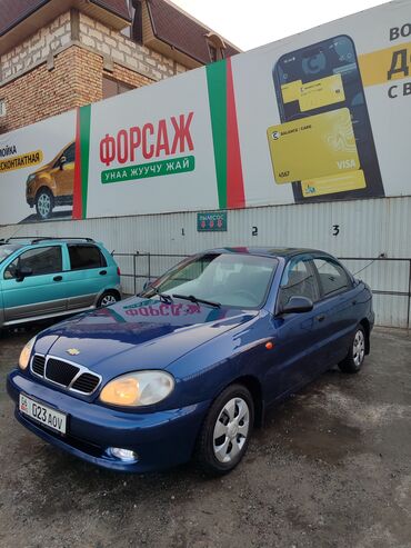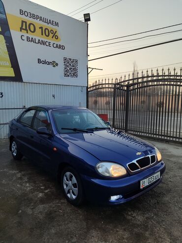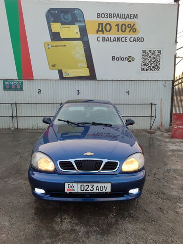Chevrolet Lanos, синий седан Основные характеристики: - Кузов: 4-дверный седан, тонировка задних стекол - Салон: тканевые чехлы бежево-коричневого цвета, передний подлокотник, комплект резиновых к...
