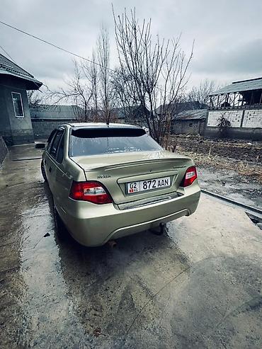 Daewoo Nexia, седан, 4 двери, золотистый цвет. Киргизские номера (KG, регион 07). Передний привод. Легкосплавные диски, тонированные стекла, спойлер на крышке багажника, ветровики на дверях. Оптика...