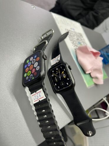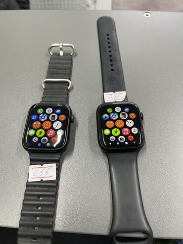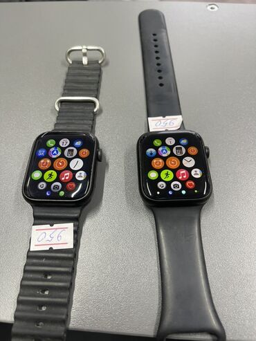 Смарт-часы (2 штуки) в стиле Apple Watch с квадратным корпусом и сенсорным экраном.