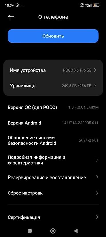 - ПО: Android 14, прошивка для POCO версии 1.0.4.0 (UNLMIXM); актуальный патч безопасности от 2024‑01‑01.
