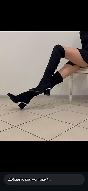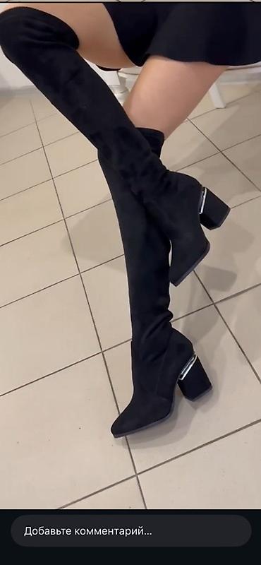 Высокие женские сапоги, демисезонные. - Материал: натуральная кожа (гладкая, матовая). - Цвет: черный. - Размер: 38. - Посадка до колена, плотный голенище. - Декор: ремешок с металлической пряжкой/...
