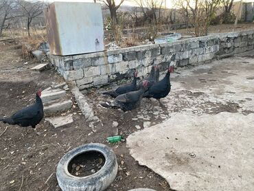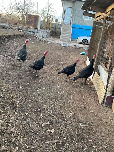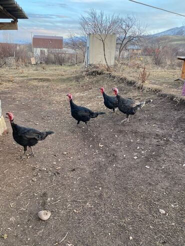 - Порода: чёрные индейки (темный оперение, розовые головы и шея).