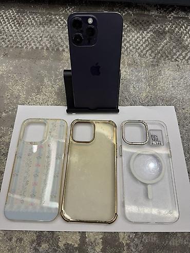 IPhone 14 Pro, Б/у, 128 ГБ, Deep Purple, Защитное стекло, Чехол