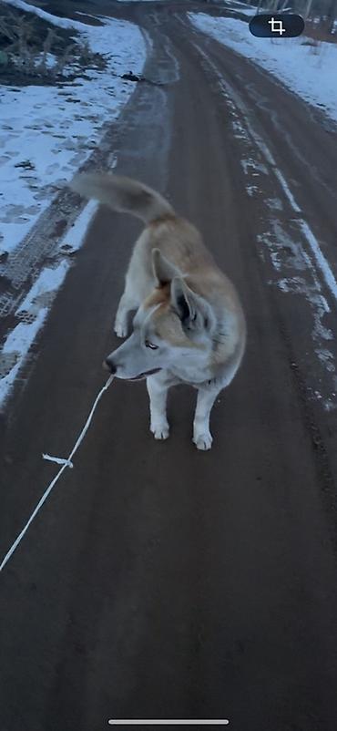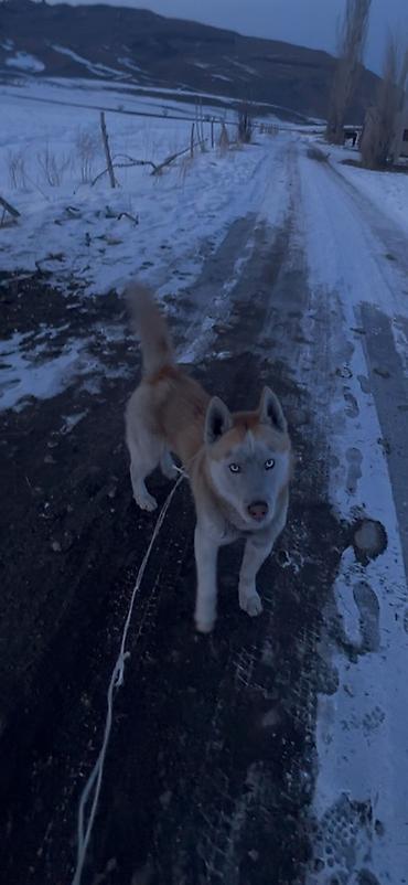 Сибирский хаски, кобель, рыже-белого окраса с голубыми глазами. Атлетичное телосложение, густой двойной шерстный покров, стоячие уши, хвост кольцом. Активный, ориентирован на человека, любит длительные прогулки и бег, хорошо чувствует себя на улице в холодное время года. Подходит для активных хозяев, способен к упряжной работе и треккингу. Необходимы регулярные физические нагрузки, умственные игры и уход за шерстью (вычёсывание в сезон линьки). Возможна жизнь в вольере или доме при условии достаточного выгула.