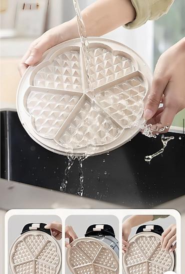 - Антипригарное покрытие съёмных панелей — легко вынимать вафли и просто мыть.