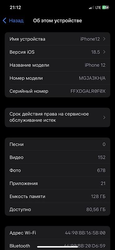 Apple iPhone 12, белый цвет Состояние идеальное , фейс айди не работает 75 АКБ, , обмена нетВход•Регистрация