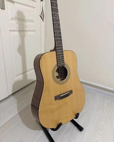 - Корпус дредноут обеспечивает объемный, насыщенный звук с хорошей проекцией — подходит для аккордового сопровождения и игры пальцами.