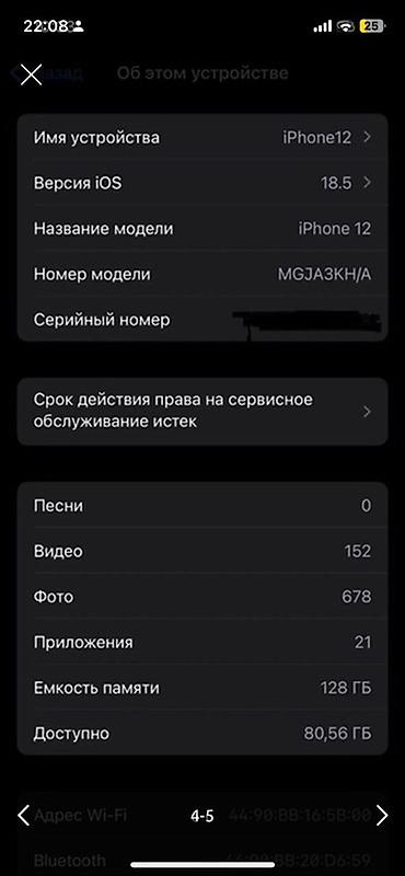 - Память: 128 ГБ (доступно около 80,56 ГБ на момент скриншота)