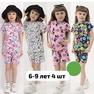 Набор детских летних костюмов для девочек, размер на возраст 6–9 лет (в комплекте 4 шт).