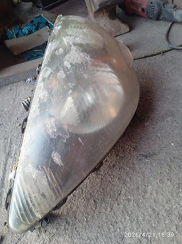 - Передняя фара: пластиковый рассеиватель, форма вытянутая треугольная; внутри видны отражатели ближнего/дальнего света. Корпус с нижними креплениями, разъем под штатную проводку. Подходит под галогенные лампы. Прозрачный плафон помутневший, требует полировки/чистки.