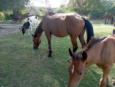 Лошадь (кобылка) Семиз байлоодо 2 ай болду 3 жаш ургаачы Описание: - Масть: темная (вороная/темно-гнедая), густая черная грива и хвост. - Возраст визуально молодой, компактное телосложение, выраж...
