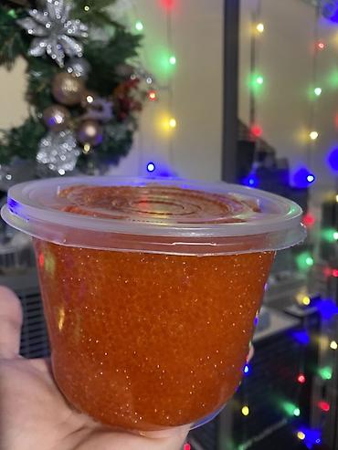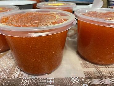 Икра красная зернистая в пластиковых ведёрках. Икра форели