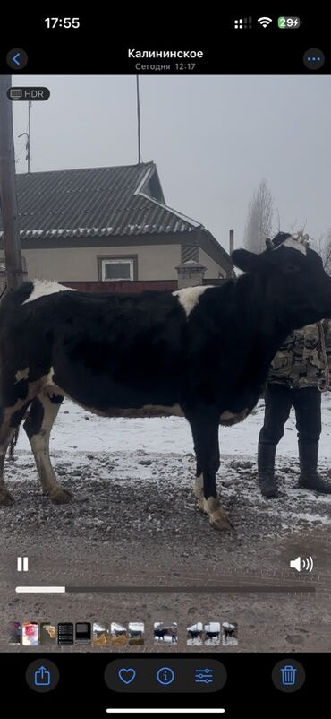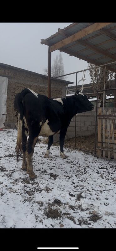 Крупная молочная корова черно-пестрой масти (тип голштин/черно‑пестрая). Прямая крепкая спина, глубокая грудь, хорошо развитый корпус, правильная постановка конечностей. Спокойный характер, животное приучено к привязному содержанию. Подходит для частного хозяйства и разведения.
