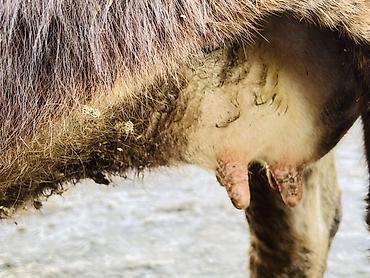 - Выраженное вымя с 4 сосками, удобными для ручной дойки; хорошие промежутки между сосками.