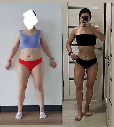 Первые результаты через 2 недели (указано на баннере). На фото — реальные трансформации подопечных. Тренер имеет профильные дипломы и сертификаты: диагностик в фитнесе, мастер-тренер, функциональный тренинг, работа с мышечными синдромами, первая доврачебная помощь.