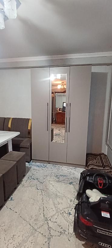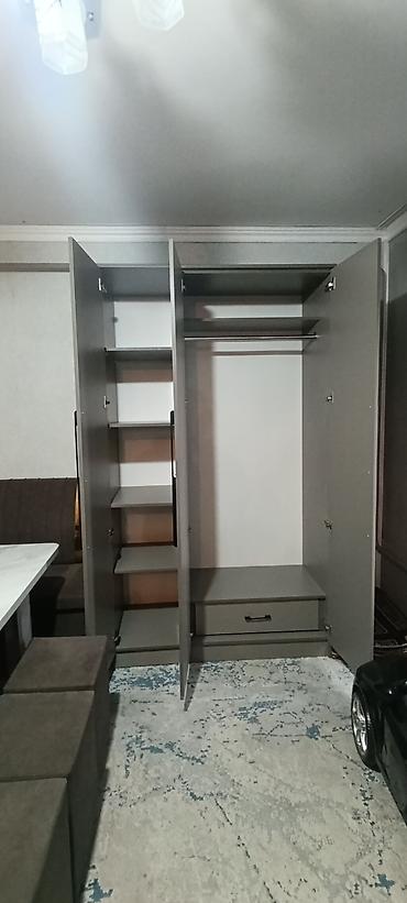 Комплектация: корпус, три фасада с зеркалом на центральном, штанга, полки, выдвижной ящик, фурнитура.