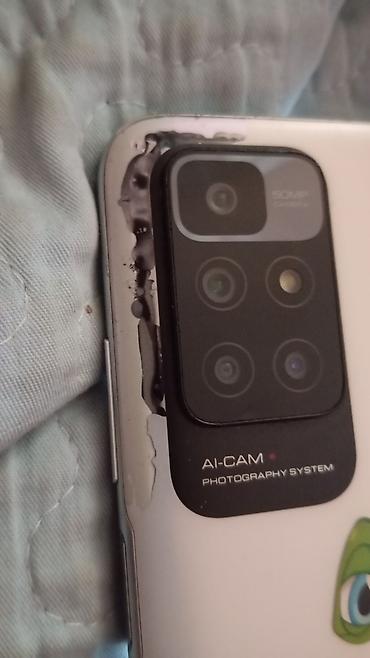 Смартфон Redmi (серия с блоком камер AI-CAM, 50 MP) в белом цвете.В кара Балте чуть чуть сарапался