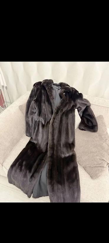 Шуба из тёмно-серого меха (норка), классическая длина ниже колена