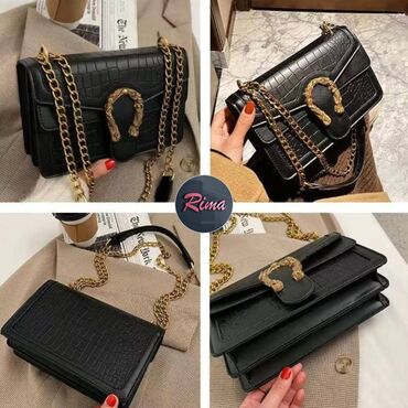 - У черной — массивная съемная цепь под золото, возможна носка на плече или кросс-боди.