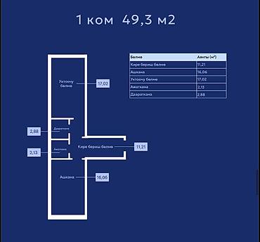🏢 ЖК Munara (Manas) ✨ 1-комнатная квартира — 49,15 м² 🏢 7 этаж из 12 📐 Удобная квадратная планировка 🍽 Кухня с местом под обеденную зону 🚿 Раздельный санузел 👗 Отдельная гардеробная 🪟 Светлая ква...