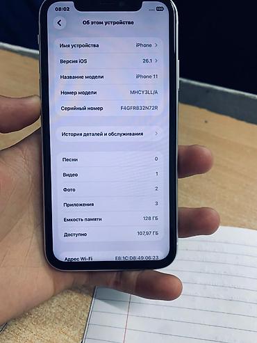IPhone 11, 128 ГБ, белый - Модель: iPhone 11 (номер модели MWM22KH/A) - Память: 128 ГБ, доступно ~100,45 ГБ - iOS: версия 18.1.1 - Цвет: белый - Дисплей: , фронтальная панель без кнопки Home - Кам...