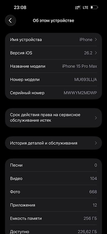 - Модель: iPhone 15 Pro Max (номер модели MU693LL/A)