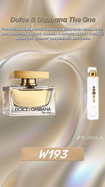 - W193 — вдохновлён Dolce & Gabbana The One. Роскошная свежесть: персик и мандарин освежают, роза и лилия раскрываются, ваниль и пачули добавляют чистый, манящий шлейф уверенной женщины.