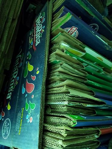 Картон Каропки есть всех вид Гофрокоробки из плотного трёхслойного картона, сложенные в стеллажи. Форматы преимущественно средние и крупные (приблизительно от ?20 см до ?30 см по фото), плоско слож...
