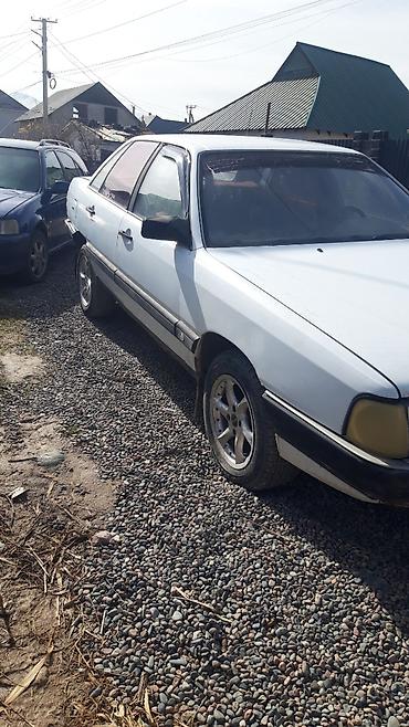 Audi 100 C3, седан, белый цвет. Классический кузов с длинным капотом и просторным салоном.