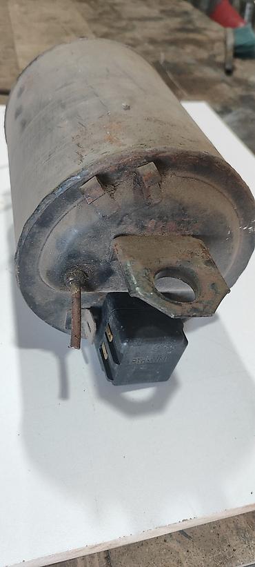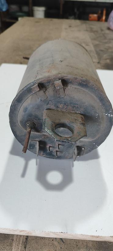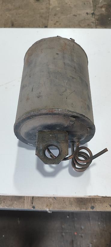 Компрессор от советского холодильника. Цилиндрическая форма, сварные торцы. На одном торце расположены: