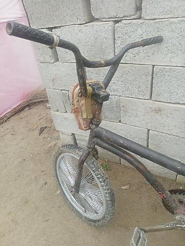BMX-велосипед с округлой стальной рамой и высоким рулём.