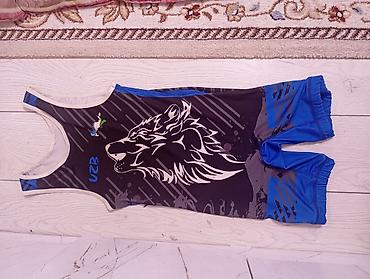 Борцовские трико и футболка с символикой Кыргызстана. бу размер s 8 9 10 жашка тураа келет Учоо биригип 1500 сом акция Комплект: - Сине-голубые борцовские трико с принтом «KGZ» и эмблемой солнца, г...5 000 KGS