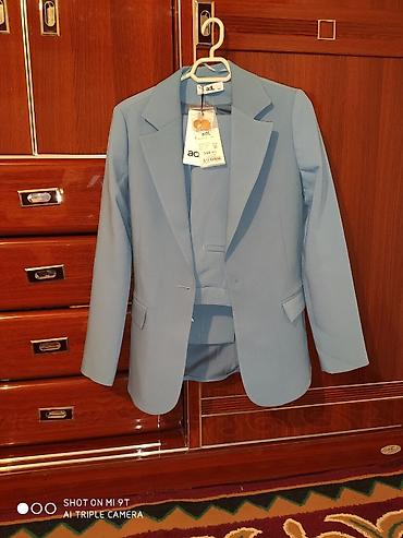 Женский комплект из двух предметов в насыщенном васильковом цвете. - Верх: свободная асимметричная туника с коротким рукавом. Мягкая драпировка на плечах и каскадные воланы создают выразительный с...
