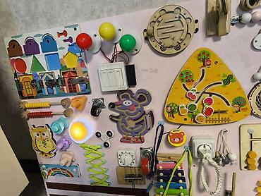 Готовая насыщенная станция «занимательных дел» — ребенок будет с интересом крутить, щелкать, шнуровать, считать и музицировать.
