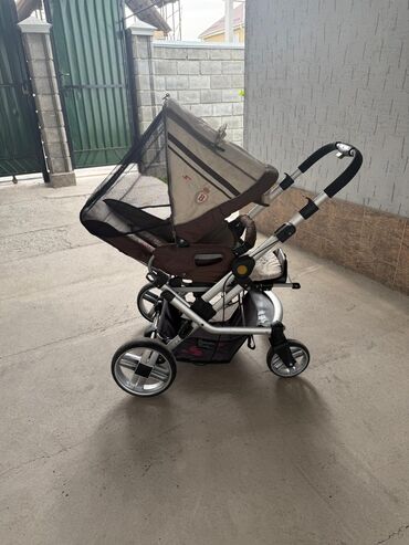 СамовывозУниверсальная детская коляска в бежево-коричневых тонах. Оснащена регулируемым капюшоном, который защищает от солнца и ветра. Прочная рама с большими колесами обеспечивает хорошую проходимость на разных поверхностях. Под сиденьем расположена корзина для вещей или покупок. В комплекте предусмотрена москитная сетка для защиты ребенка от насекомых во время прогулок.