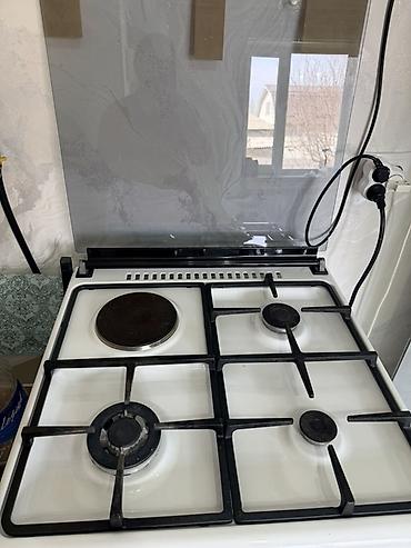 - Варочная поверхность на 4 конфорки: 3 газовые + 1 электрическая (чугунные решетки).