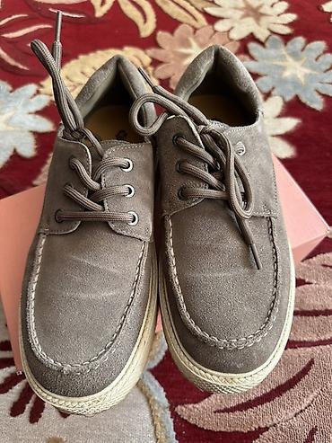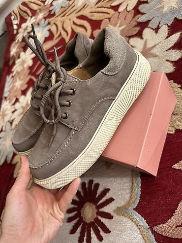 Две пары обуви. 1) Замшевые кеды/мокасины: - Цвет: серо‑тауп. - Верх