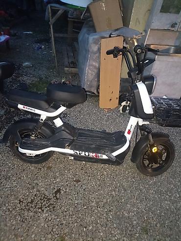 Электровелосипед/электроскутер городского типа с педалями Основные характеристики: - Электропривод с аккумуляторным блоком под седлом - Привод на заднее колесо - Тормоза: передний дисковый - Подве...