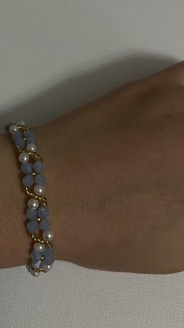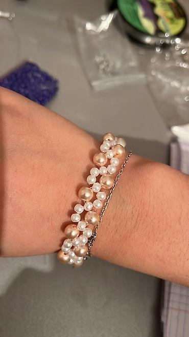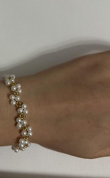 Браслеты из бусин ручной работы - Модели: несколько вариантов на эластичной резинке. - Дизайны: - Перламутрово‑белые бусины, чередующиеся с золотистыми шариками. - Белые бусины с вставками под...