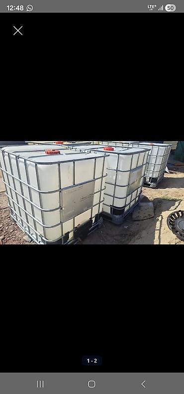 Пластиковые кубовые емкости (IBC) с металлическим каркасом. Характеристики: - Объем: ориентировочно 1000 л каждая - Материал бака: полиэтилен высокого давления (HDPE) - Каркас: оцинкованный металл...