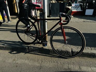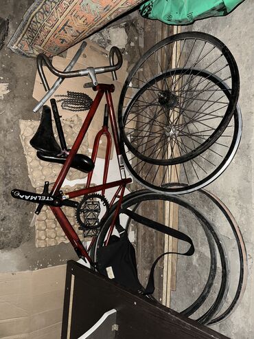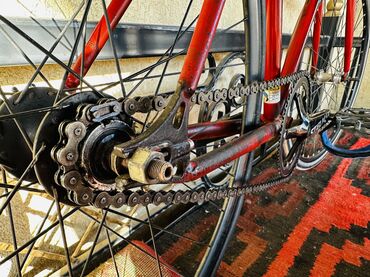- Рама и вилка: сталь, классическая геометрия трек/фиксед, окраска бордовый металлик.
