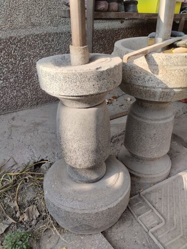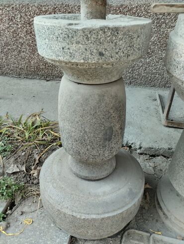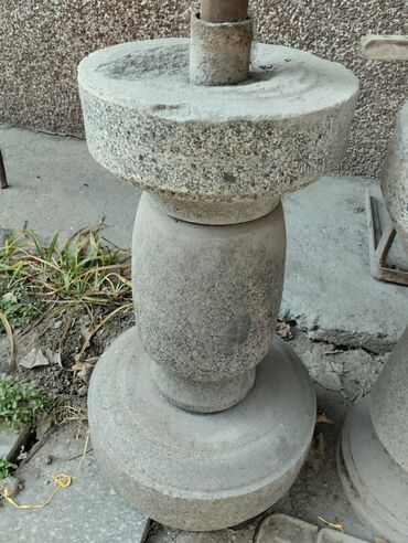 - Поверхность: натуральный серый гранит, обработка — шлифовка/точение; верхняя часть с посадочным отверстием под трубу/штырь.